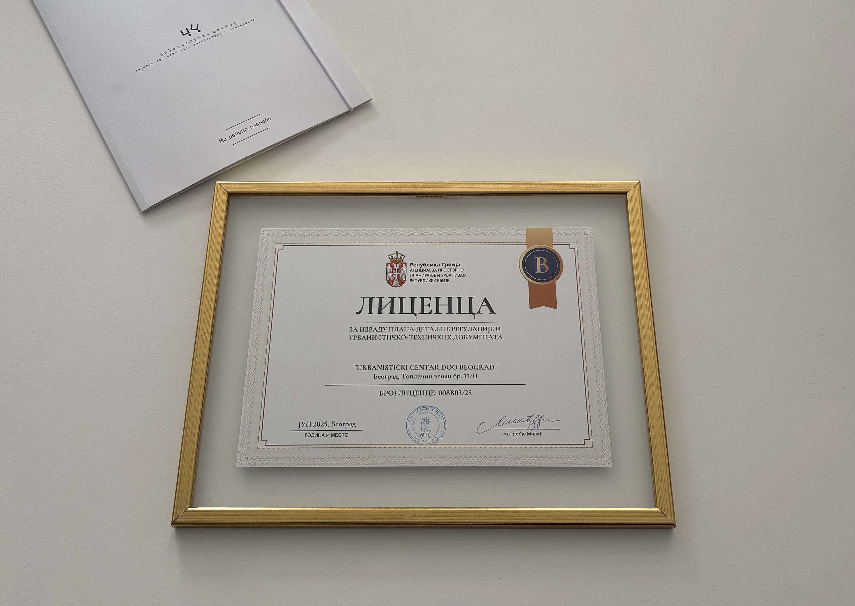 3. “URBANISTICKI CENTAR DOO BEOGRAD“ is granted a “Category V” license, No. 008B03/25, for the preparation of detailed regulation plans and urban-technical documentation.