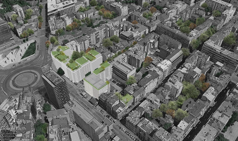 Granicom Izmena i dopuna plana detaljne regulacije blokova 15 i 16, između ulica: Makenzijeve, Alekse Nenadovića, Njegoševe, Beogradske i Trga Slavija, opština Vračar, obuhvaćen je prostor blokova 15 i 16 između ulica: Makenzijeve, Alekse Nenadovića, Njegoševe, Beogradske i Trga Slavija na ukupnoj površini od 3.16 ha. Predmetni prostor dva bloka planskim rešenjem je podeljen u dve celine – 1. celinu nove izgradnje (prostor uz Makenzijevu) i 2. celinu zonu sanacije (preostali prostor blokova). Zona planirane izgradnje nalazi se duž Makenzijeve ulice na sada neizgrađenim parcelama, kao i na parcelama u kontaktnom području Makenzijeve ulice, u ulici Prote Mateje i Alekse Nenadovića. Plansko rešenje formirano je u skladu sa planskim osnovom, poštujući regulaciju zatečenog bloka. Planirana je izgradnja komercijalnih sadržaja i objekta kulture u zoni nove izgradnje. Precizno definisanje položaja i načina rekonstrukcije spomenika kulture „Sala mira“, koji je u vreme svog nastanka imao poseban značaj u društvenom i urbanističkom razvoju Beograda, biće utvrđeno putem javnog arhitektonsko-urbanističkog konkursa.
